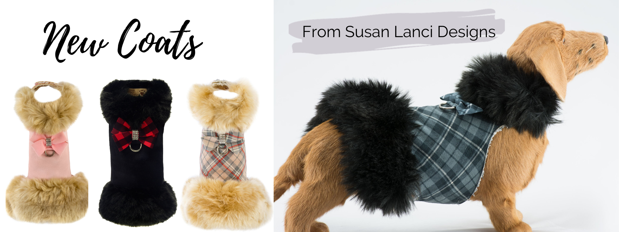- New items are added every week! We carry a great selection of dog harnesses, coats, sweaters, dresses, collars, accessories, dog travel bags and carriers, beds, shoes, clothing and much more!