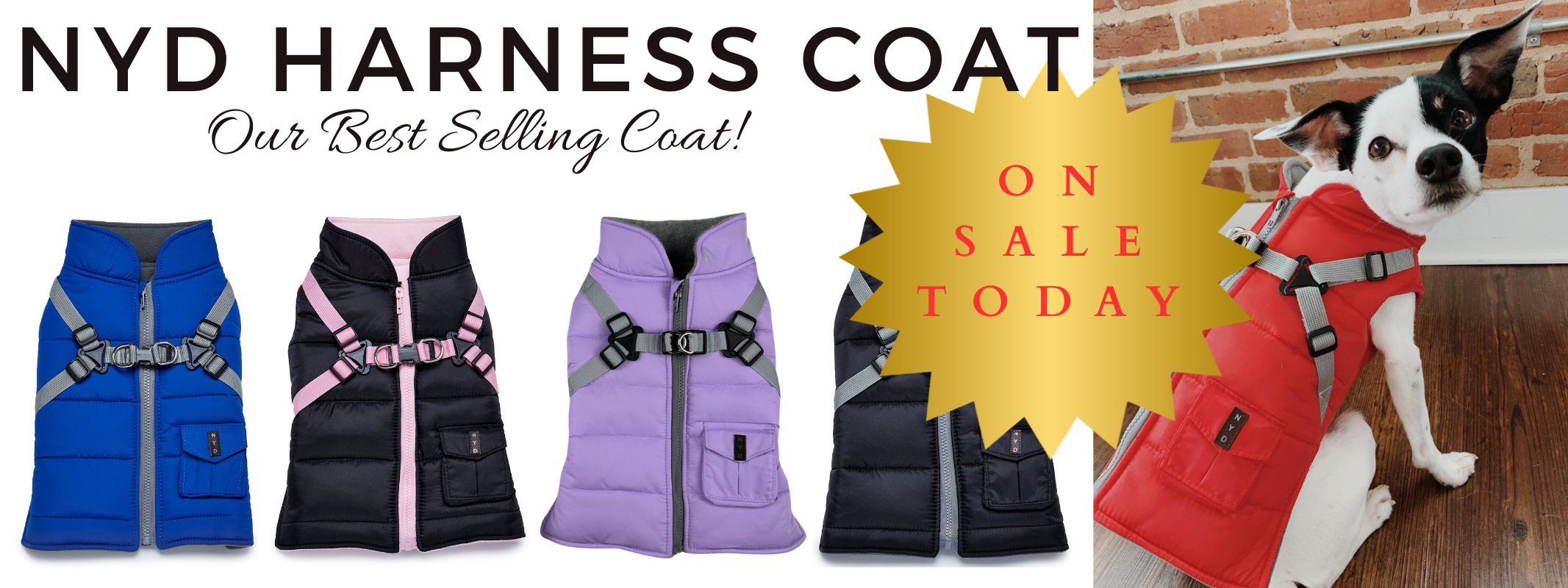 New items are added every week! We carry a great selection of dog harnesses, coats, sweaters, dresses, collars, accessories, dog travel bags and carriers, beds, shoes, clothing and much more!